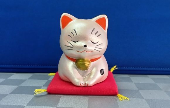 ※写真は、「お辞儀する招き猫!」です。鹿児島市の商店街で店頭に飾られていたのを見つけ、一目ぼれして即買いしました!